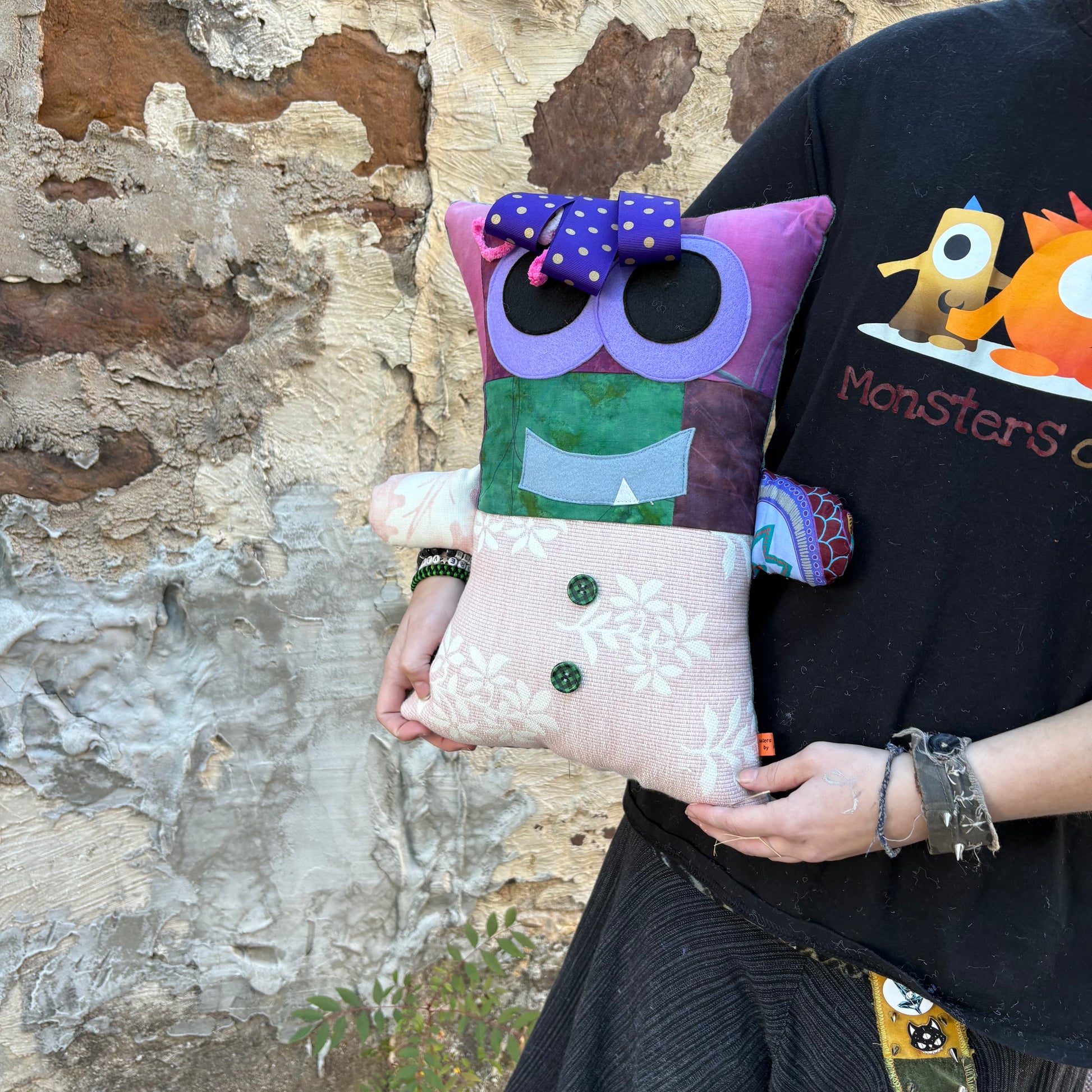 Meet Anita, the patchwork monster who keeps the roller skating rink rolling! With her colorful quilted body made from mismatched fabric scraps, she's the friendliest face at the rink. Anita greets every skater with infectious enthusiasm, helps lace up skates, and keeps the energy high with her infectious laugh. Whether she's spinning on wheels herself or cheering from the sidelines, this lovable monster brings joy and whimsy to every visit. Perfect for roller skating fans and monster lovers alike!