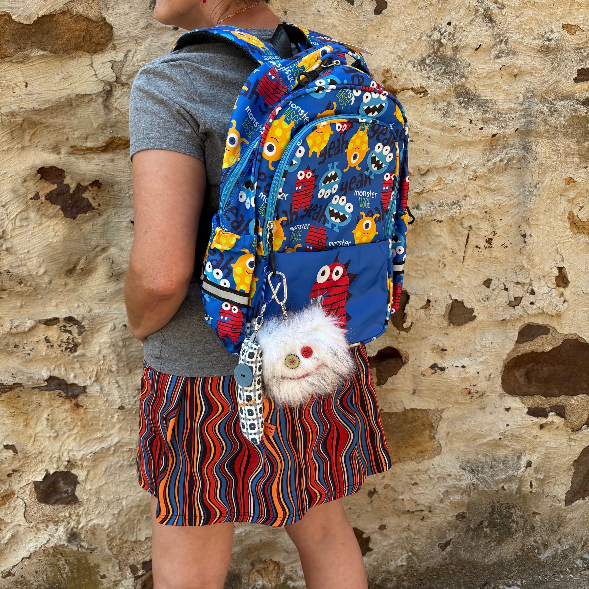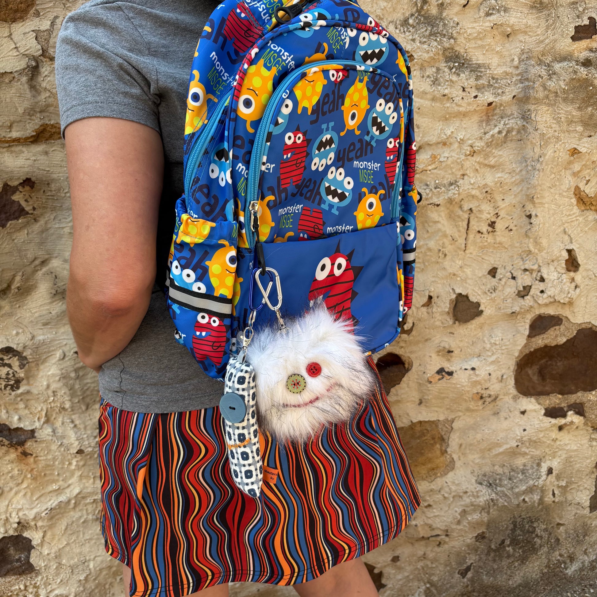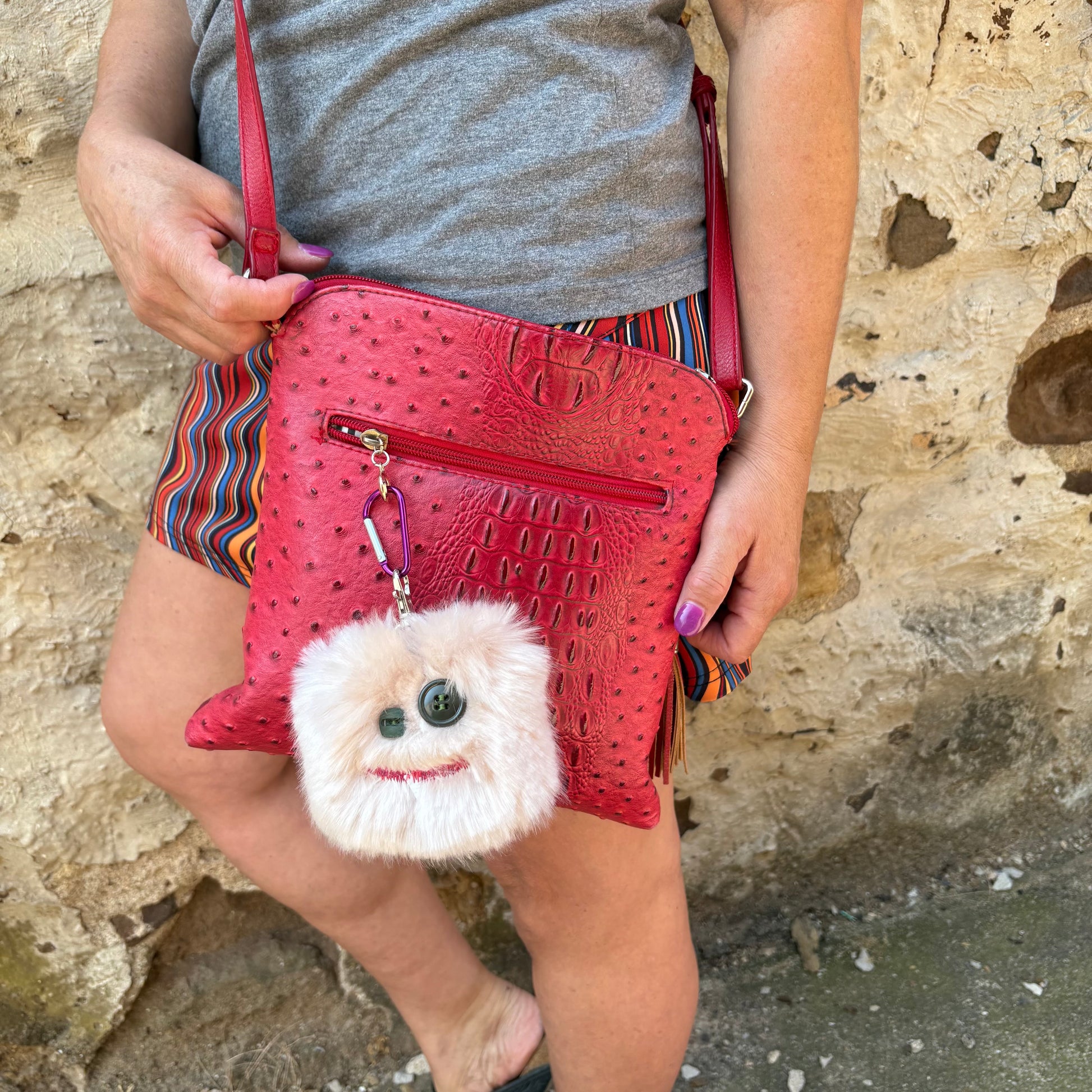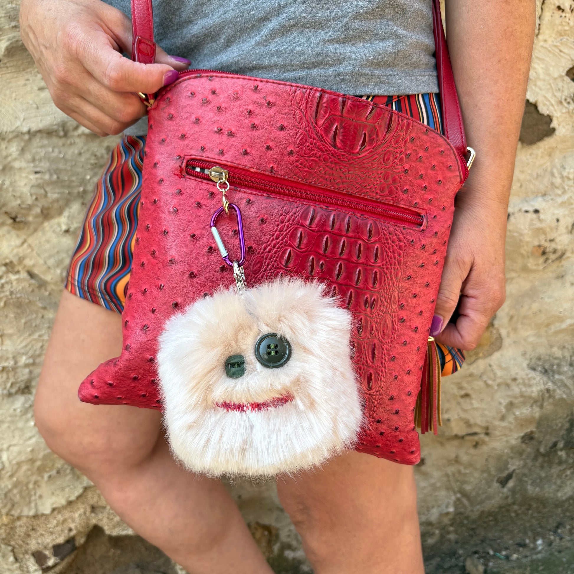 Fuzzy monster keychains with a fun personality. Deck out your bag or keys with our newest shop item. Tag-A-Long's will add a fun flair to any accessory! Approximately 3.5" x 3.5". Comes with small carabiner clip and snap clip on each Tag-A-Long.