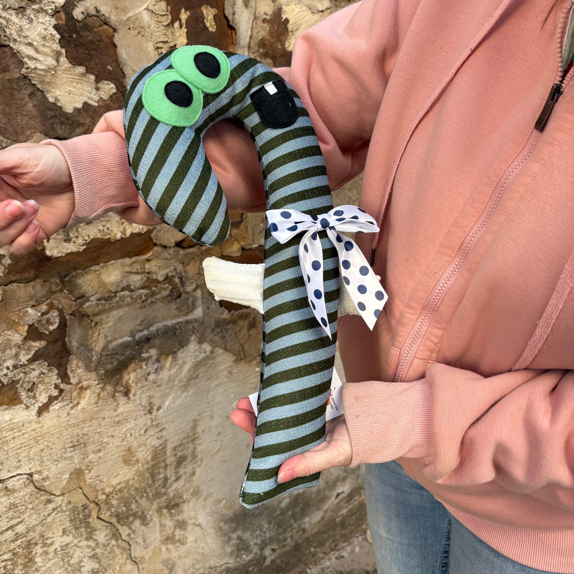 Meet Jeeves, the cheerful candy cane-shaped monster ready to spread holiday cheer! With his festive red and white stripes and mischievous personality, Jeeves is the perfect companion for your Christmas celebrations. Whether perched on a shelf, hung on a tree, or nestled among party decorations, this whimsical character brings instant joy and laughter to any gathering. Jeeves loves nothing more than being the life of the party—so grab him and let the festive fun begin!