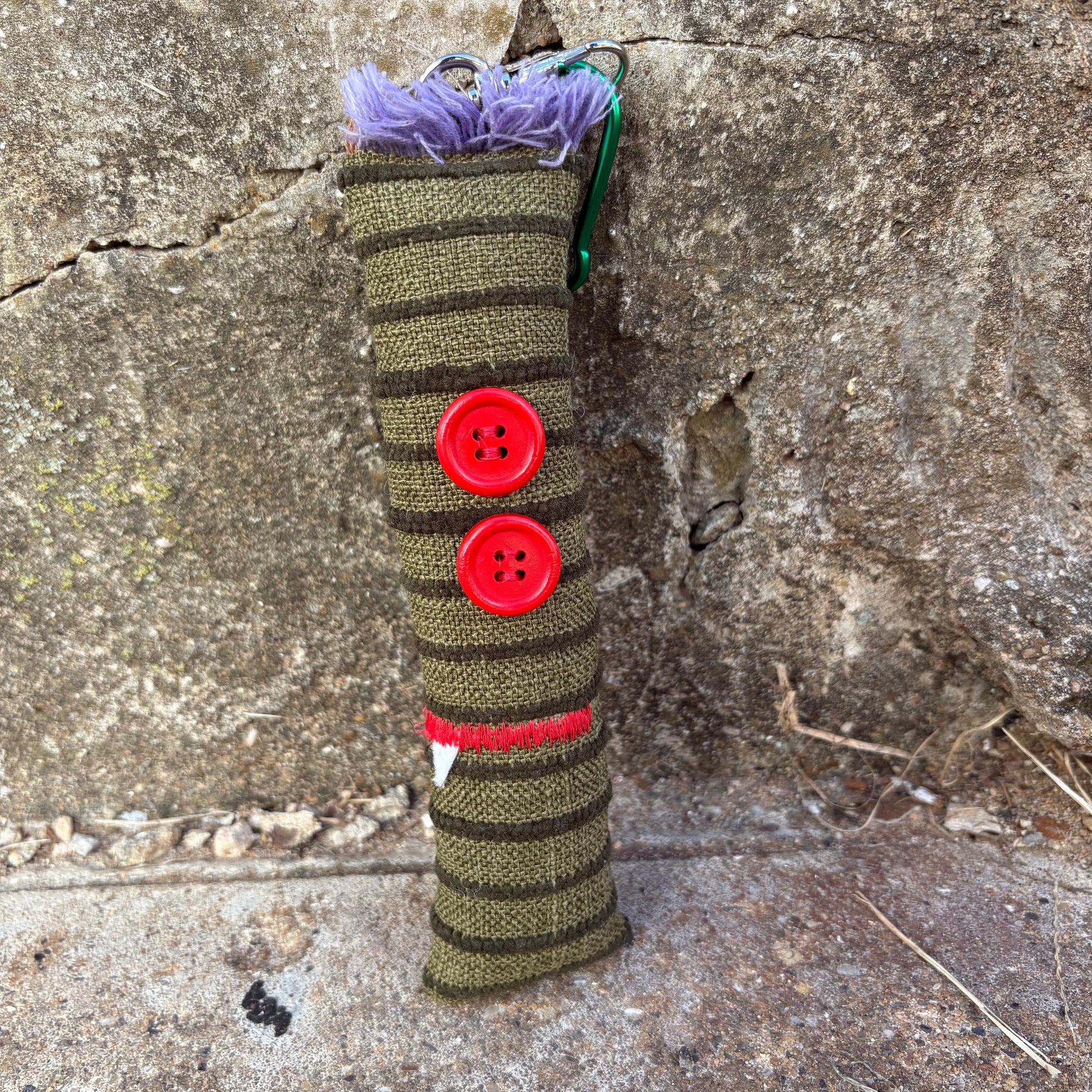 Add a splash of fun to your keys with these adorable monster keychains! Each one features quirky button eyes and a convenient swivel clip with a twist ring for easy attachment. Perfect for anyone who loves monsters or unique fabric accessories, these little creatures bring charm and personality wherever you go. Sizes are approximately: 3"x3" to 7"x2"
