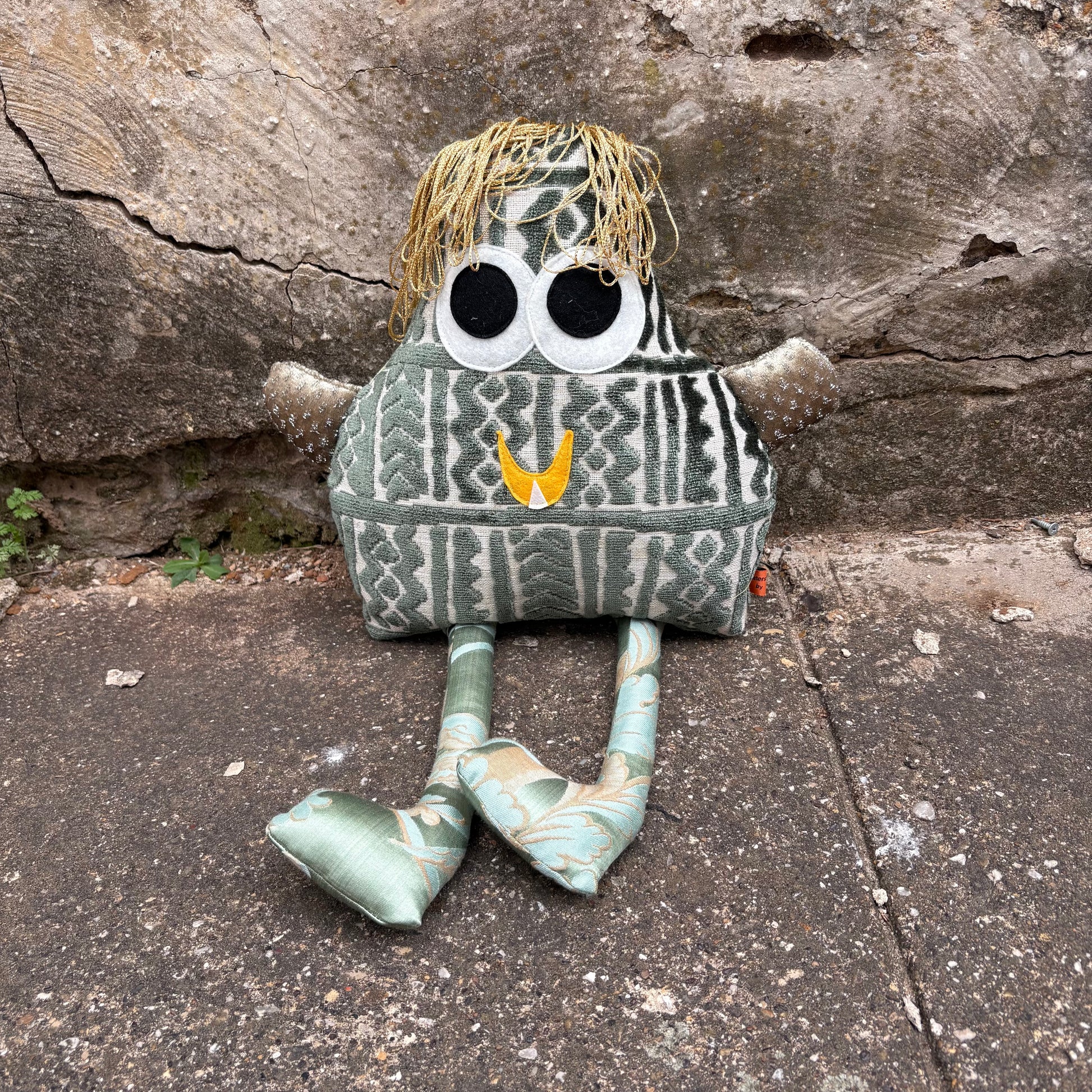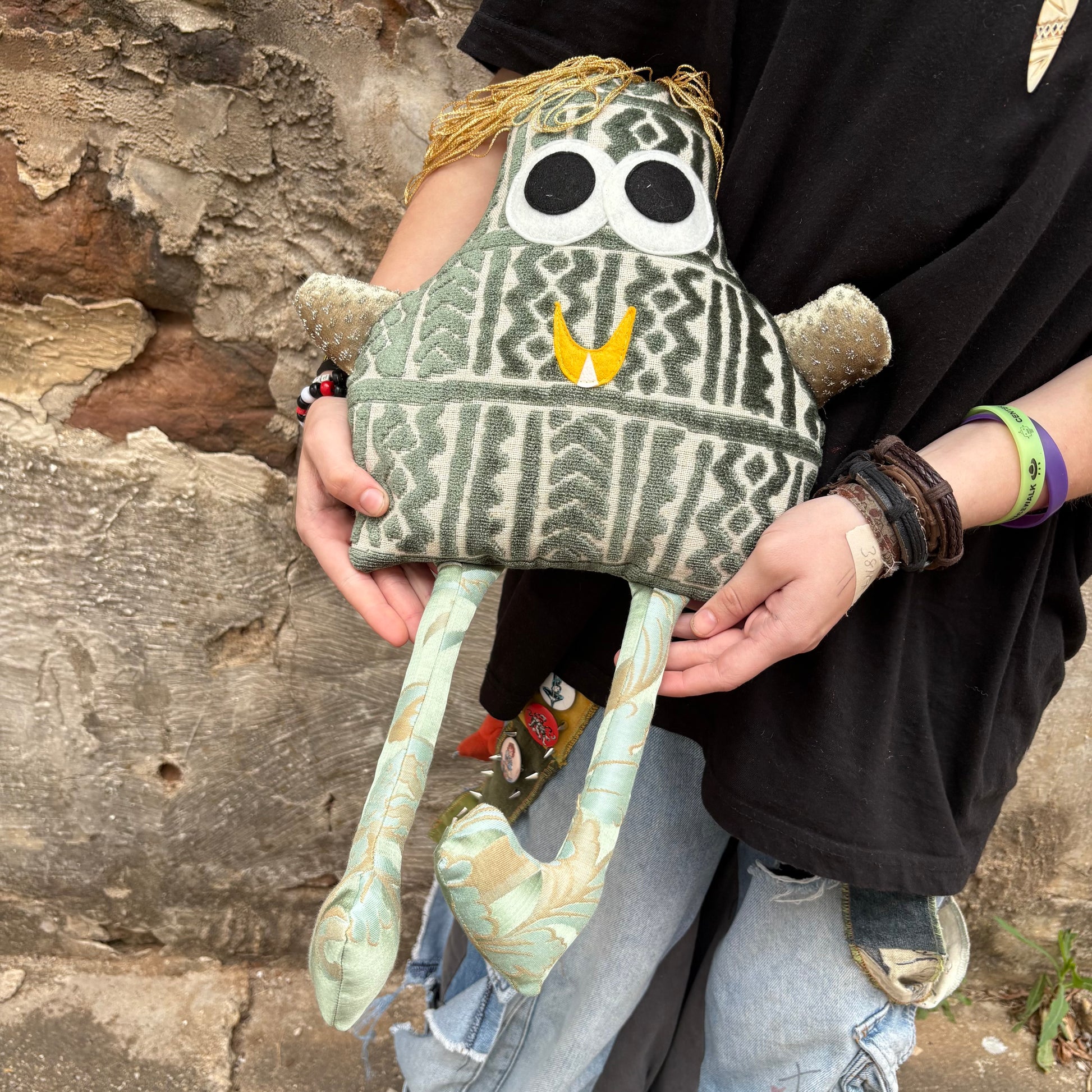Meet Makki, a charming green monster with a playful personality. This adorable creature features a soft, vibrant green body paired with distinctive gold rope hair that adds a touch of whimsy and character. Perfect for collectors, kids, or anyone who loves quirky, colorful companions. Makki brings a splash of fun and imagination to any space.