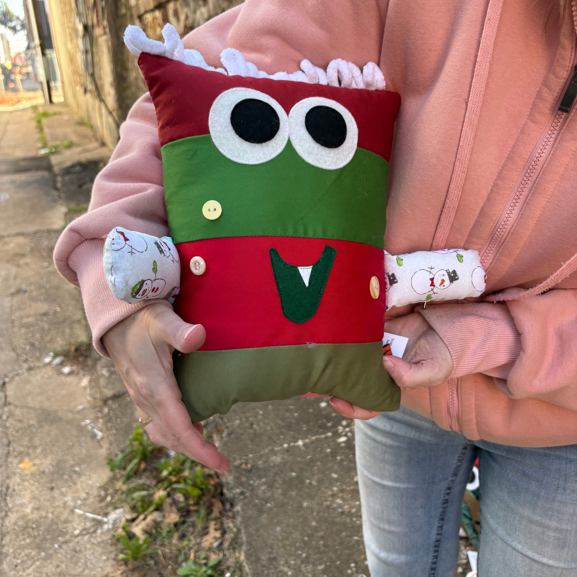 Meet Minthe, the mischievous patchwork monster ready to bring holiday chaos to your home! Stitched together from festive fabrics in cheerful Christmas colors, this quirky character has one favorite hobby: bouncing on the bed. With a goofy grin and wild personality, Minthe is the perfect companion for kids who love imaginative play and a little bit of bedtime mischief. Soft, huggable, and bursting with seasonal charm, this one-of-a-kind monster makes an ideal gift for anyone who celebrates the holidays with a sense of humor and adventure.