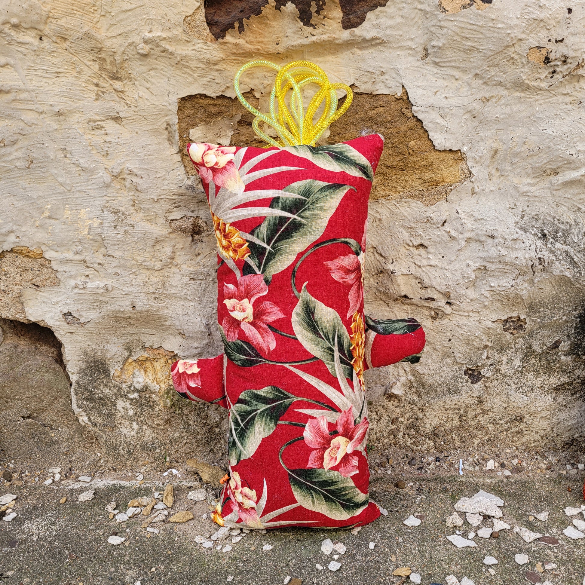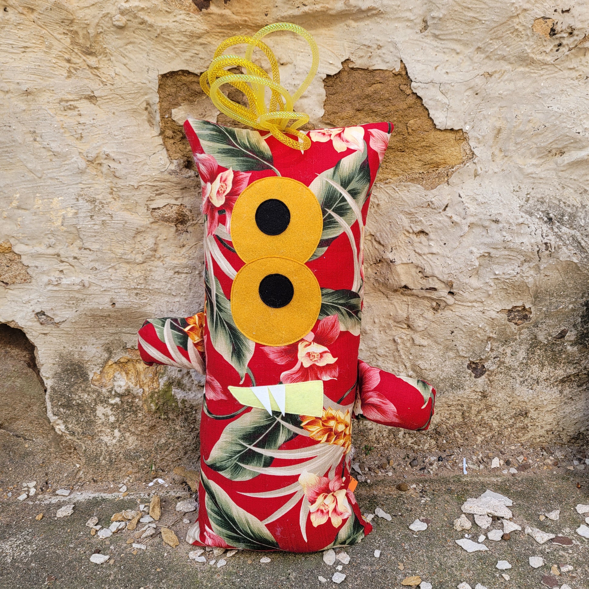Nelly is here at Monsters On Main to find a new friend to pal around with. His bright red, floral print fabric is stretchy and super soft. I can't wait to see who picks this diamond to be their new best friend.