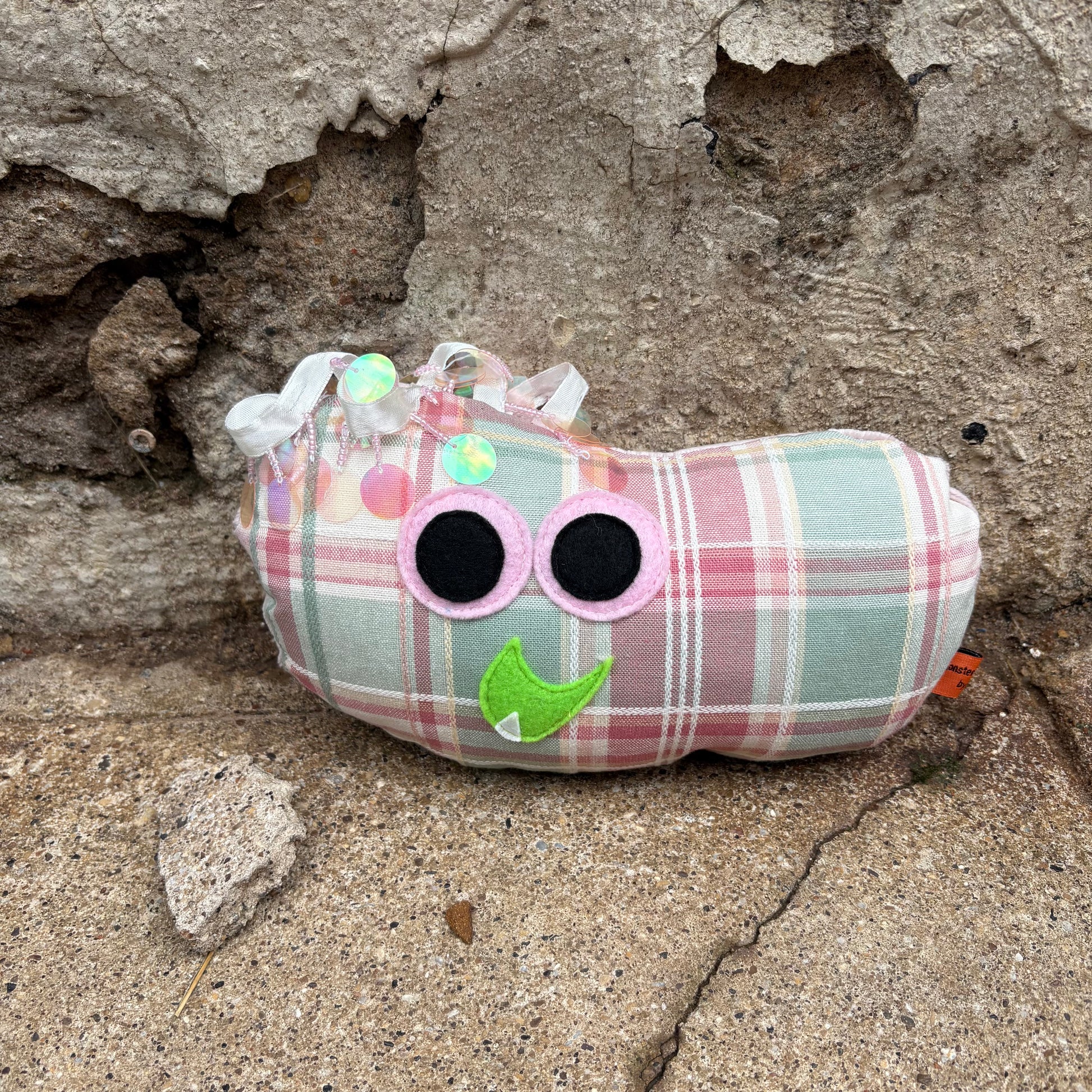 Meet Pixy, the adorable pink plaid jellybean monster that's bursting with charm. This whimsical creature features a soft pastel pink body adorned with classic plaid patterns, giving it a cozy, collectible appeal. Perfect for monster enthusiasts and quirky decor lovers, Pixy brings playful personality to any space. With its jellybean-inspired design and endearing details, this little monster is ready to become your new favorite companion.