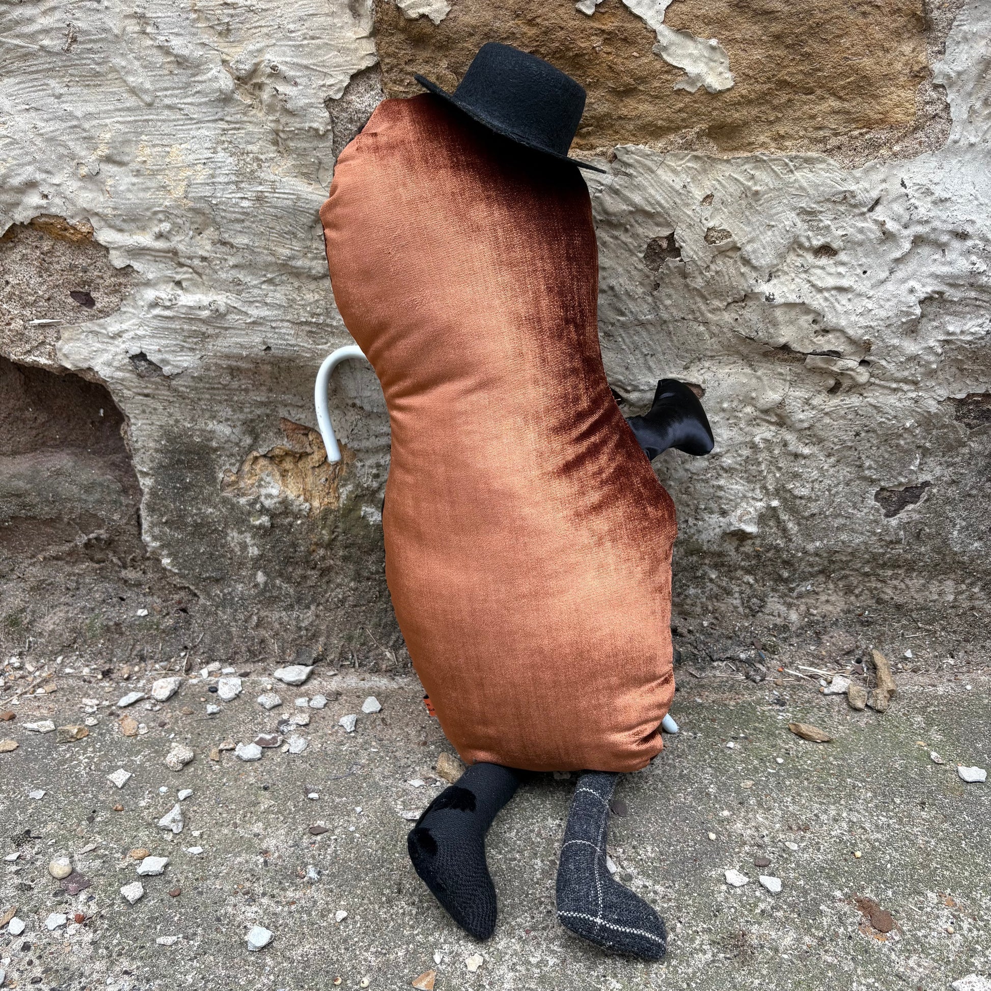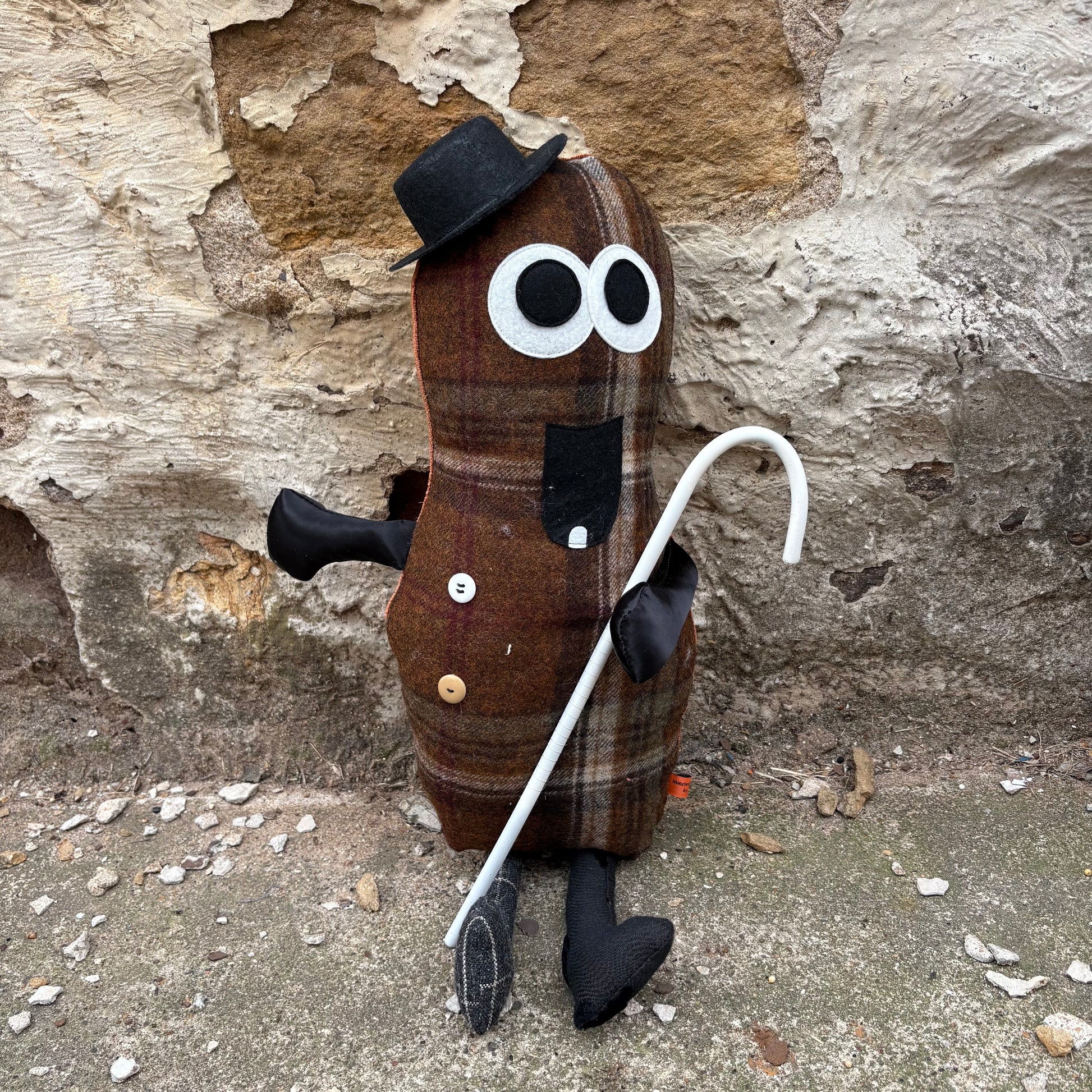 Meet Runner, the dapper peanut monster ready to steal the show! This charming character sports a classic top hat and wooden cane, perfect for comedy sketches, theatrical performances, or ensemble displays. With his polished personality and matching aesthetic alongside Virginia, Runner brings vintage vaudeville vibes and playful humor to any stage or collection. Ideal for performers, collectors, and anyone who appreciates quirky character charm with timeless style.