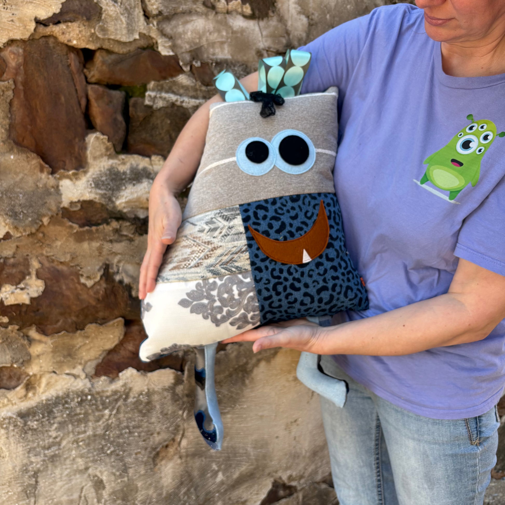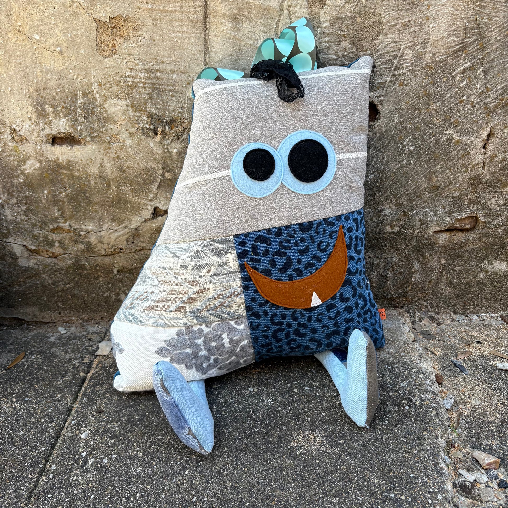 Meet Vincent, a large patchwork monster that seamlessly brings together rustic patterns and a cool denim animal print design. This unique and eye-catching mix creates a one-of-a-kind look for any room. Vincent adds a touch of playful charm and a hint of sophistication to any space.